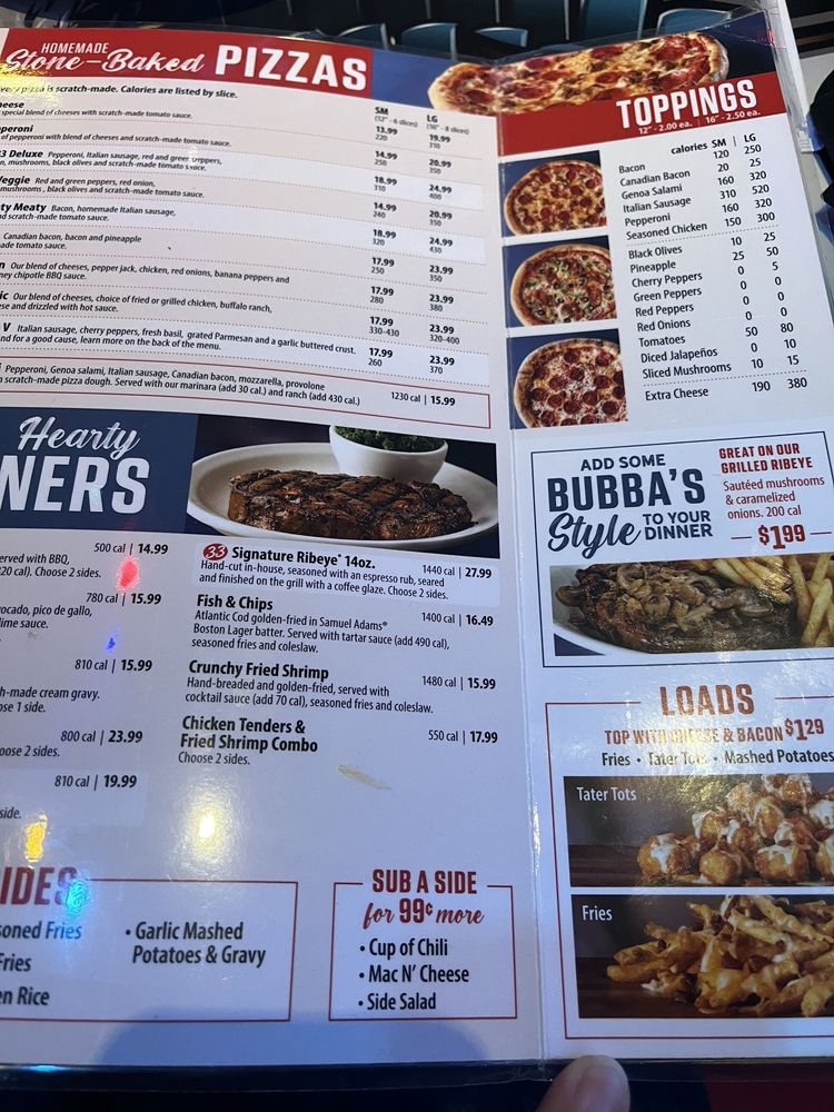 - Appetizers: Don't miss the Chorizo Queso Dip or the crowd-favorite Bubba's Nachos, both perfect for sharing.
