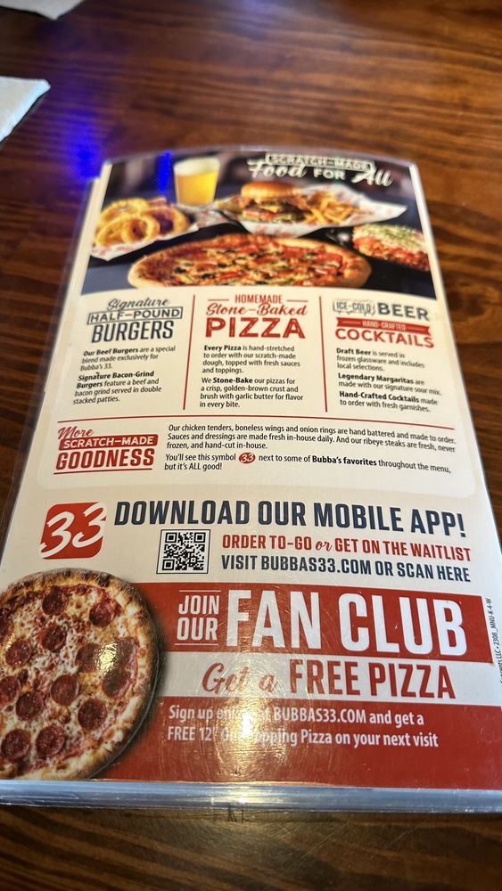 Each dish reflects a commitment to quality and flavor, ensuring a memorable experience for everyone—from families to sports fans. With friendly service and an inviting bar, Bubba's 33 is an unbeatable choice for your next meal!